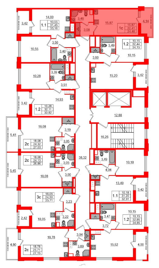Общая площадь: 24.48 м²