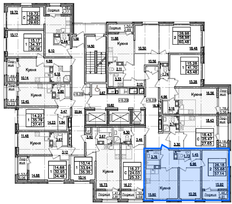 2-комнатная 57.14 м²