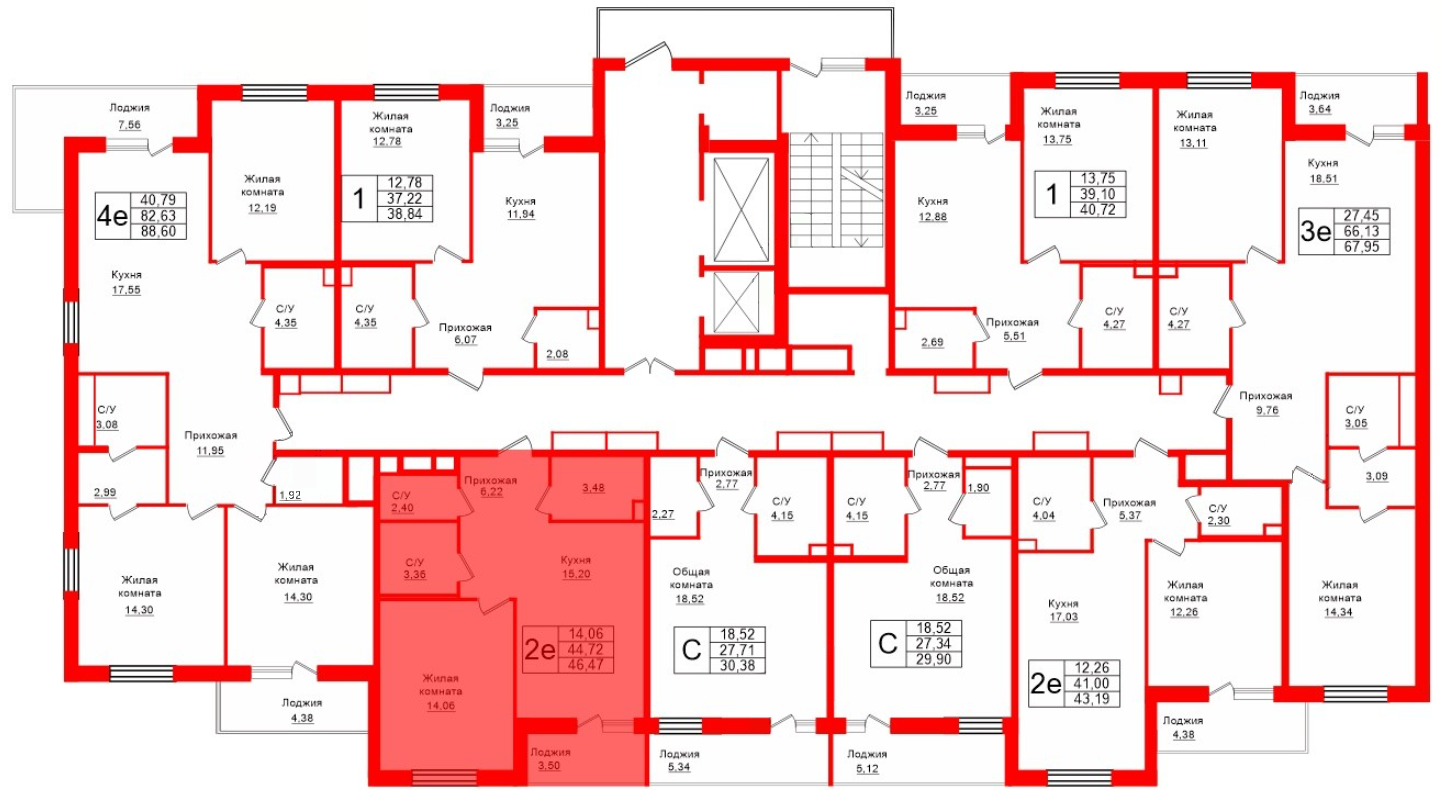 Общая площадь: 46.47 м²