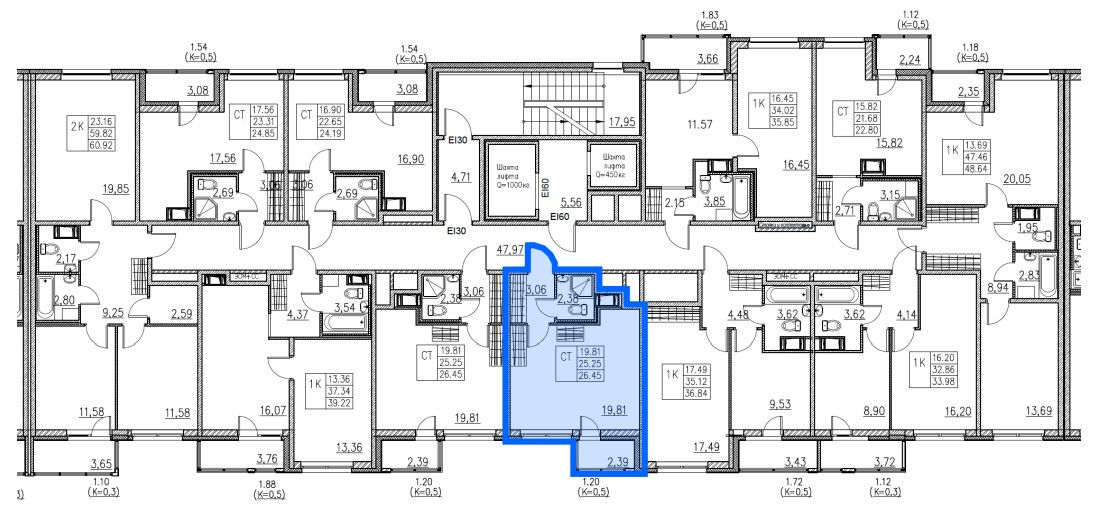 Общая площадь: 26.45 м²