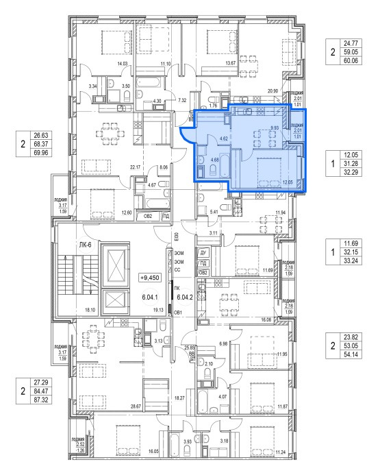 Общая площадь: 32.29 м²