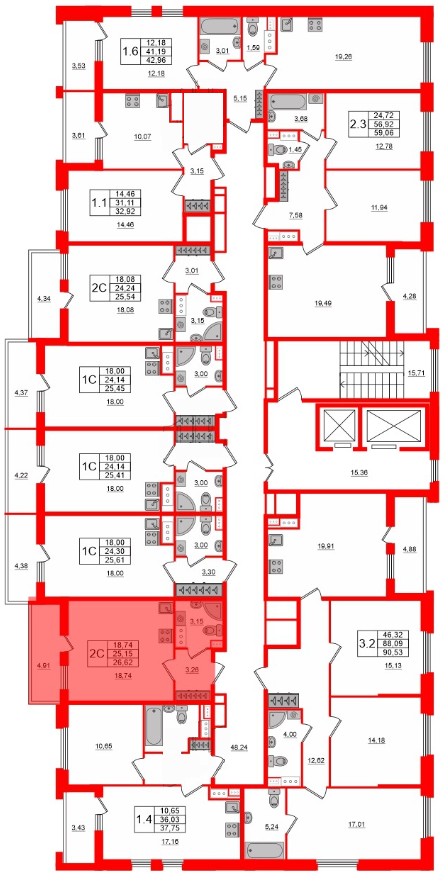 Общая площадь: 26.62 м²