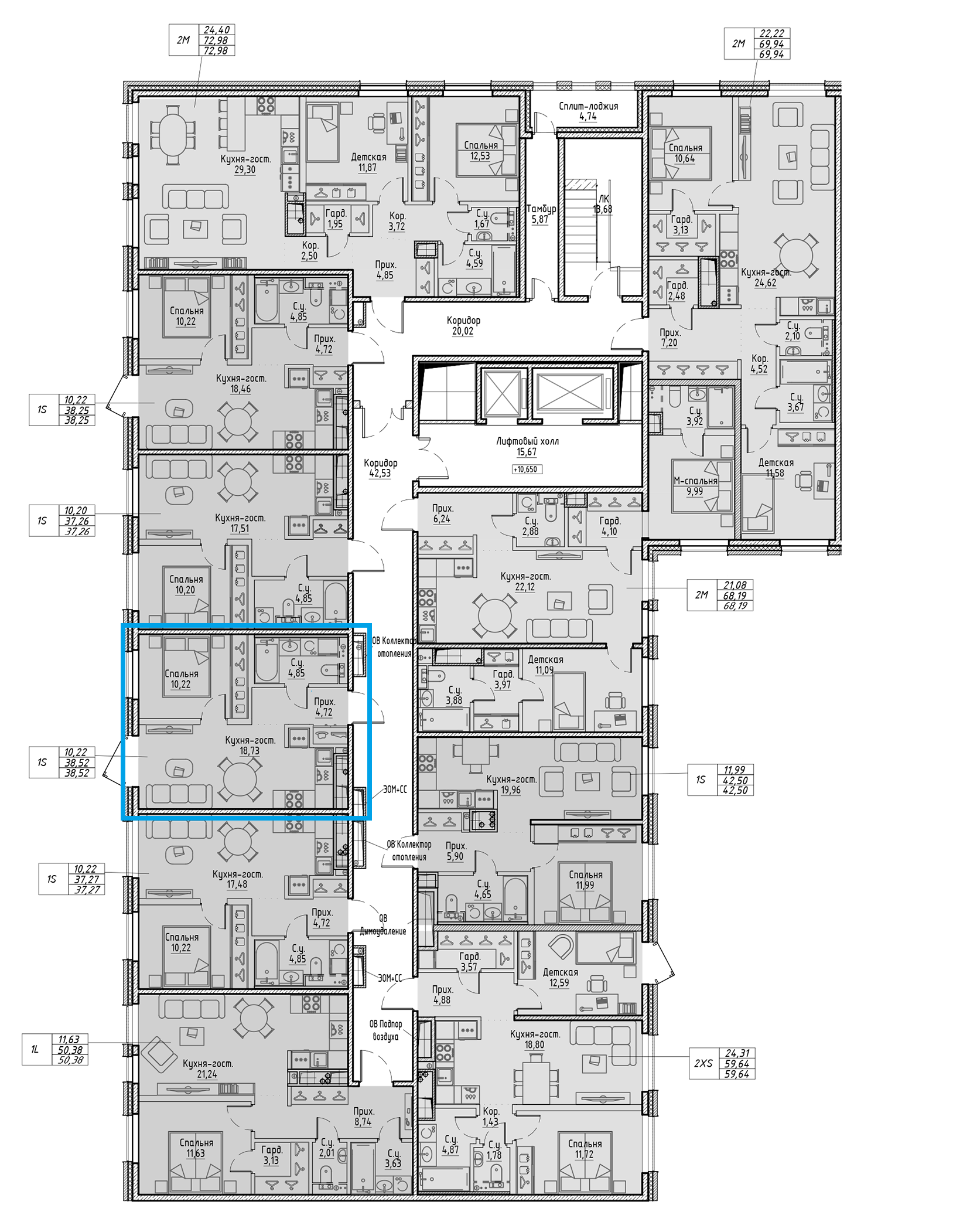 Общая площадь: 38.52 м²