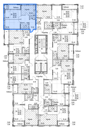 2-комнатная 62.3 м²