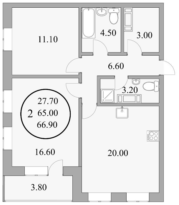 ID 452190, ЖК Тайм Сквер, Санкт-Петербург ул ГлухарскаяКоличество комнат: 2-комнатная