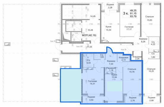3-комнатная 79.72 м²