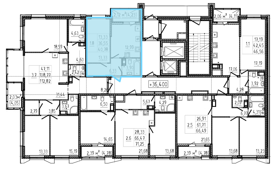 1-комнатная 38.67 м²