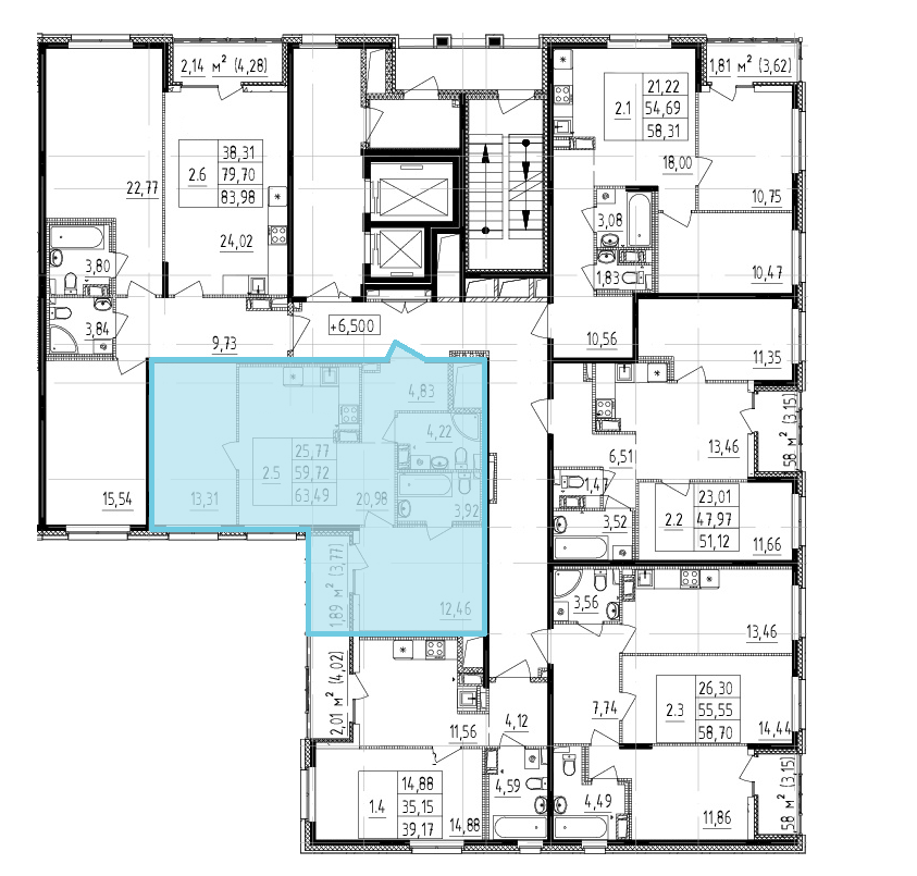 2-комнатная 61.61 м²