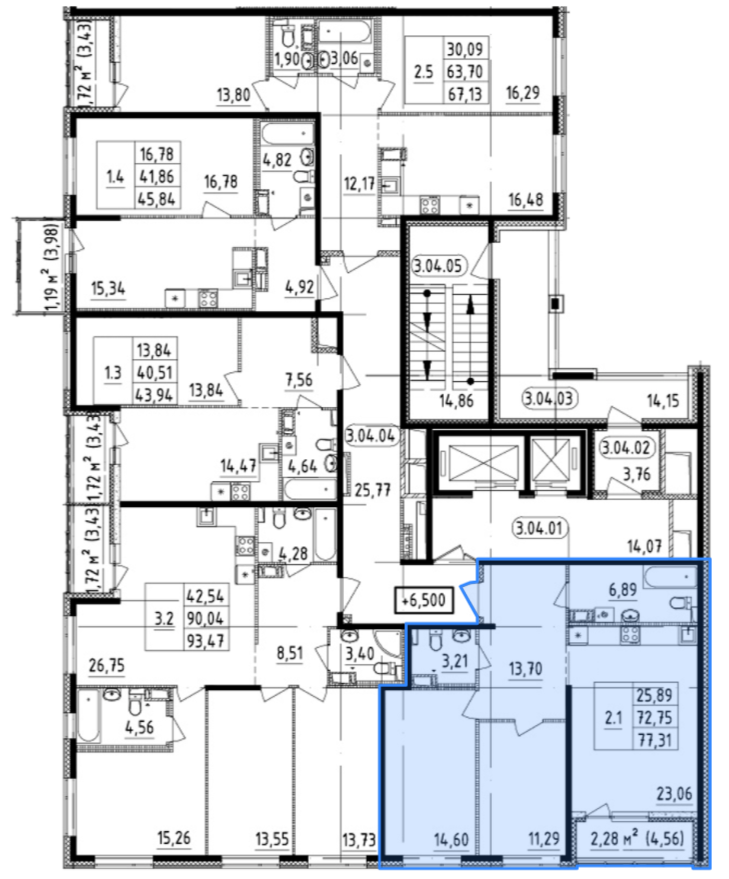 2-комнатная 75.03 м²