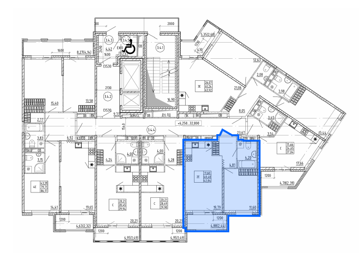 Общая площадь: 42.84 м²