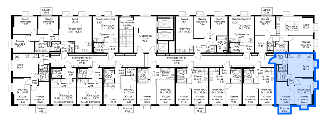 2-комнатная 51.02 м²